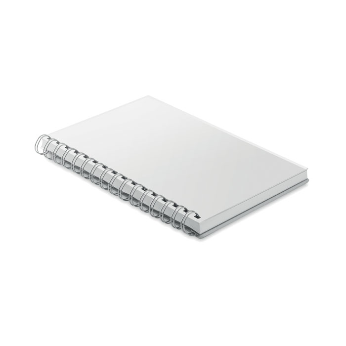 Libreta A5 con tapa de RPET y 80 hojas de papel rayado.